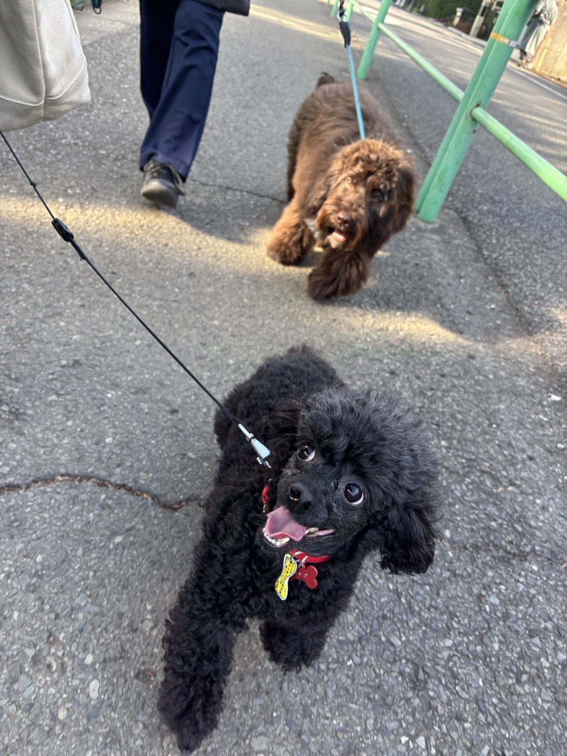 また、お散歩中は二重リードを使用し、